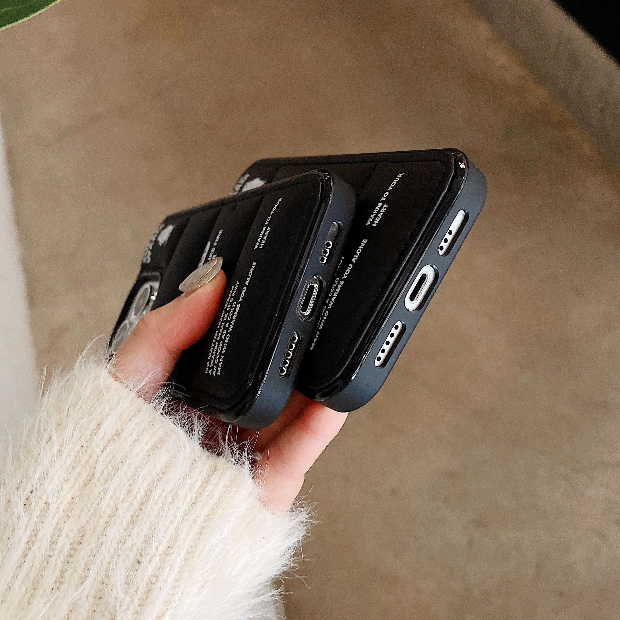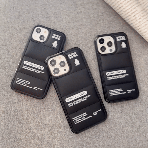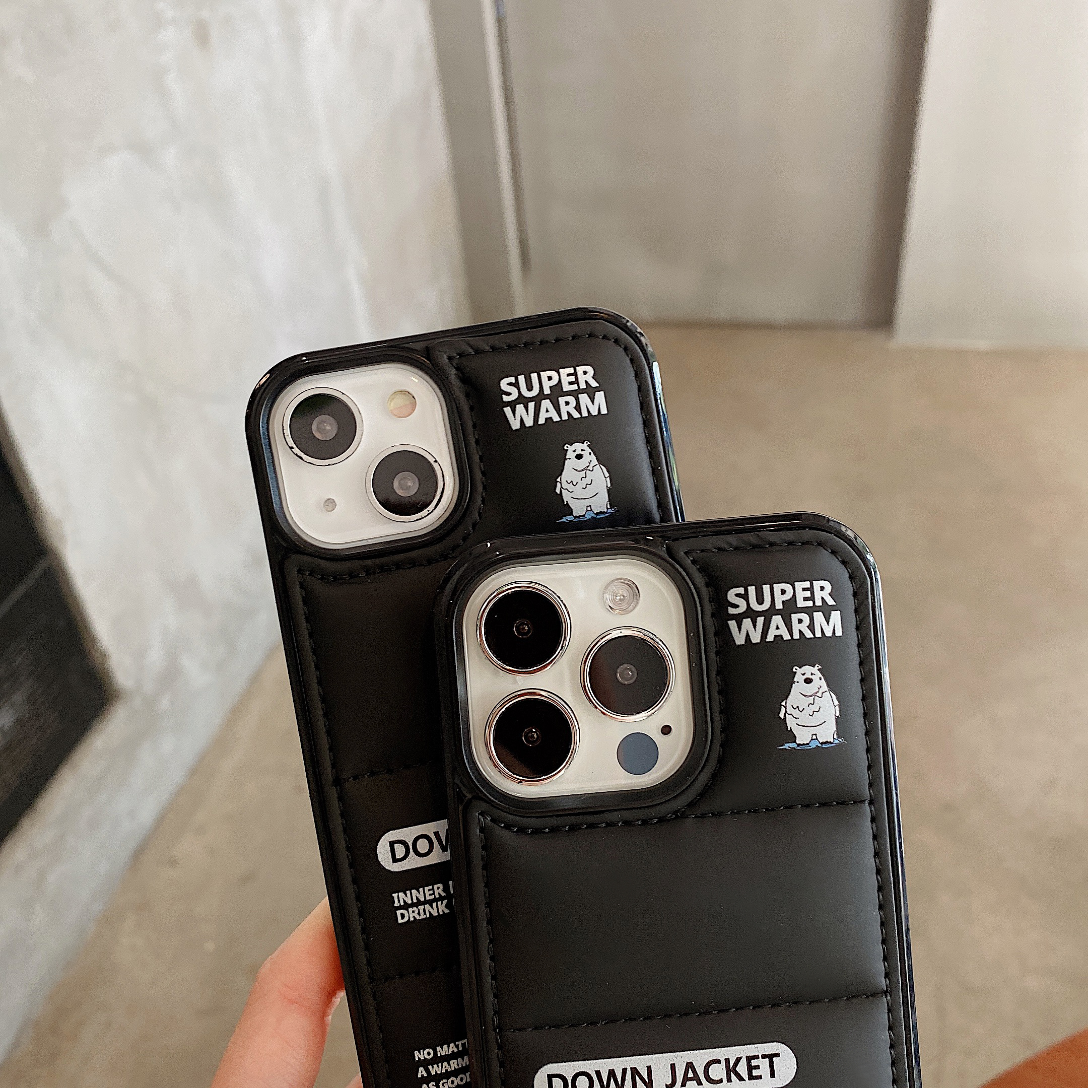 The 3D Polar Bear Puffer Phone Case for iPhone in black features a textured polar bear design, combining charming aesthetics with durable protection.