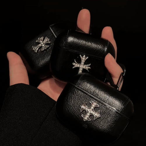 Premium Leather CHS AirPods 4 case in black offers refined style, durable protection, and a secure fit with easy access to all charging functions.