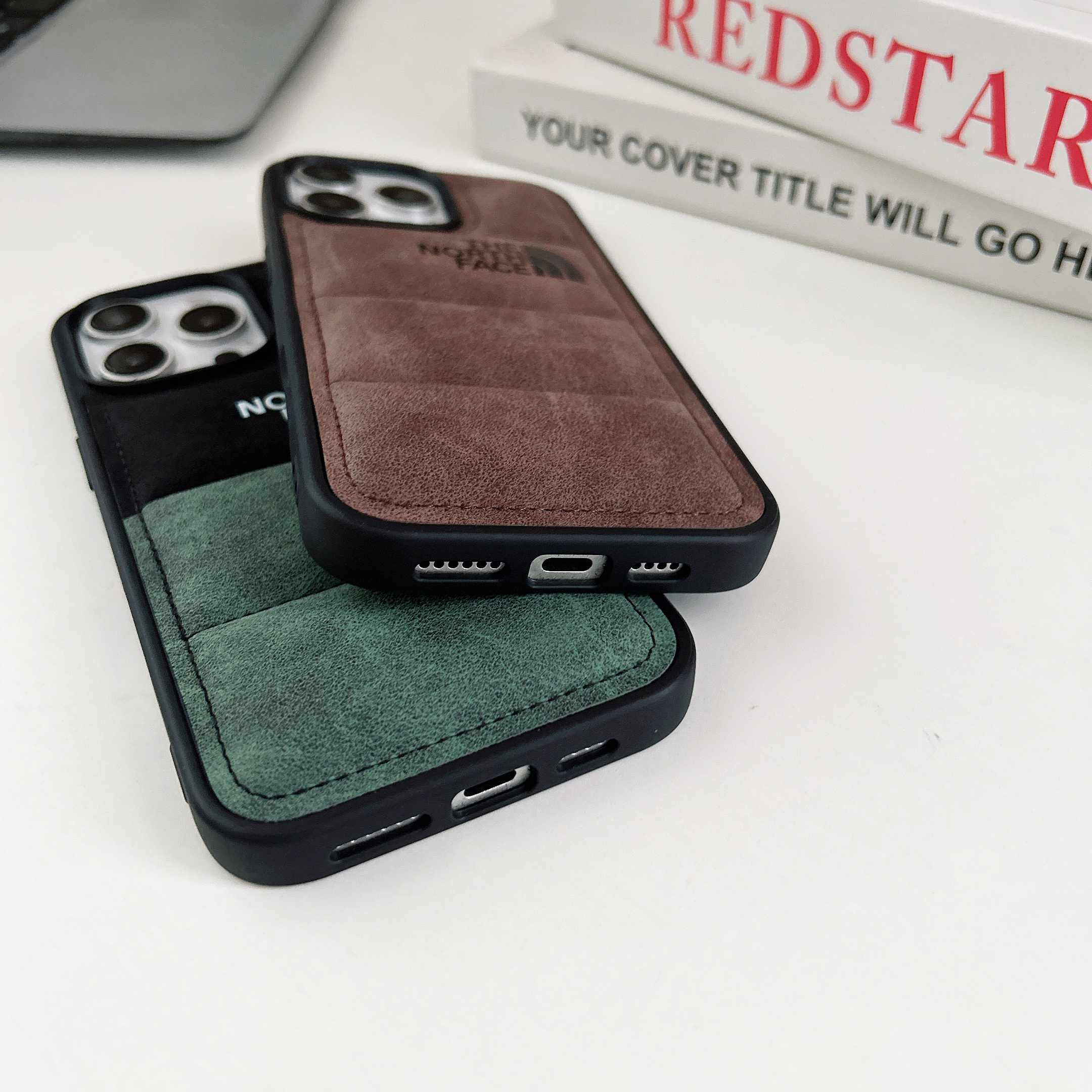 TNF Antler Skin Leather Puffer Phone Case for iPhone Double Green offers premium protection with a stylish, textured design that enhances grip and durability.